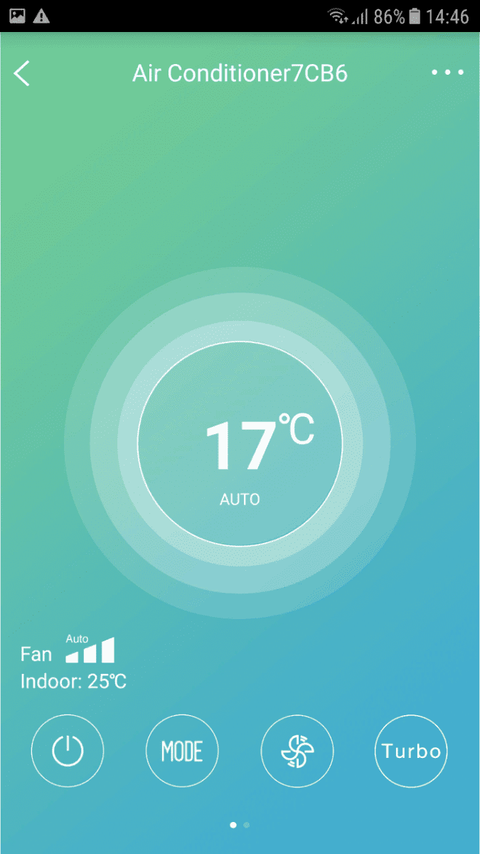 – Trên giao diện của ứng dụng, bạn có thể tăng hoặc giảm nhiệt độ của máy lạnh bằng cách vuốt tay lên hoặc xuống trên màn hình.