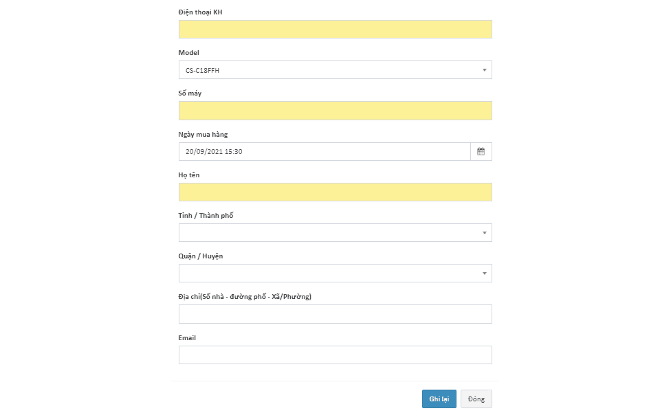 - Nếu đăng ký bảo hành cho từng sản phẩm, nhập đủ thông tin rồi chọn mục “Ghi lại”