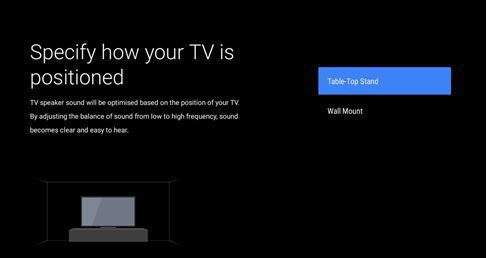 Bước 16 – Sau khi chọn loại truyền phát, bạn cần tối ưu hóa hệ thống âm thanh. Chỉ rõ cách đặt TV của bạn và chọn Table-Top Stand (Để trên bàn) hoặc Wall Mount (Treo tường).