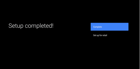 Chọn Complete (Hoàn thành) trên màn hình Setup completed! (Thiết lập hoàn tất!) để chuyển sang menu HOME.
