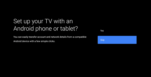 Nếu màn hình xuất hiện thông báo “Set up your TV with an Android phone or tablet” (Thiết lập Tivi của bạn với điện thoại hoặc máy tính bảng Android) hoặc “Do you have an Android phone or tablet?” (Bạn có điện thoại hoặc máy tính bảng Android không?),