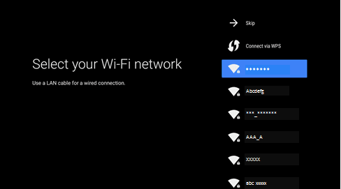 Chọn cài đặt mạng mong muốn trên màn hình Select your Wi-Fi network (Chọn mạng Wi-Fi của bạn). Bạn có thể chọn mạng không dây mà bạn muốn kết nối từ danh sách tùy chọn khả dụng hoặc sử dụng cáp mạng LAN cho kết nối có dây.