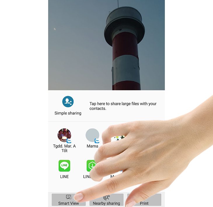 Bước 1: Trên điện thoại, bạn hãy mở hình ảnh mà bạn muốn chuyển lên tivi, sau đó tìm biểu tượng chia sẻ để mở tính năng DLNA. Tuỳ điện thoại mà biểu tượng này có thể khác nhau.