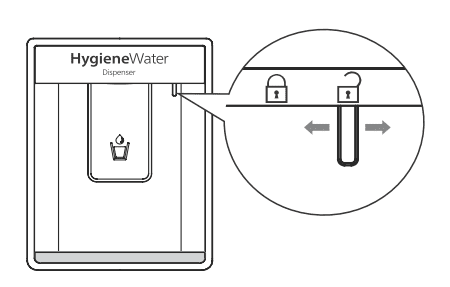 - Gạt móc khóa sang vị trí “Đóng” để tránh vô tình chạm phải làm chảy nước ra ngoài.