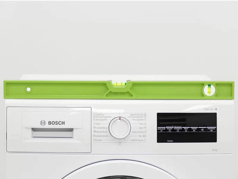 - Dùng thêm livo (thước thủy) để kiểm tra mức độ cân của máy giặt. Bong bóng khí nằm ở trung tâm của thước tức là đã đạt yêu cầu cân bằng.