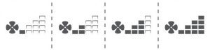 ◾Chế độ quạt “Fan Only“: Ở chế độ này máy lạnh hoạt động như một chiếc quạt gió thông thường. Khi ở chế độ quạt “Fan Only” điều hòa chỉ quạt mát mà không sử dụng đến nhiên liệu làm lạnh, vì vậy sẽ không tốn nhiên liệu. Chế độ Fan bao gồm 4 chế độ từ thấp đến cao theo ký hiệu của hình dưới đây: