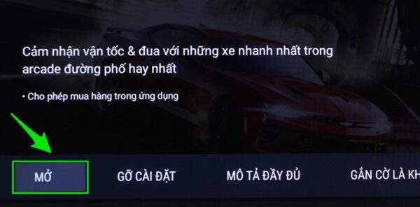 Bước 13: Sau khi cài đặt xong, tivi sẽ thông báo và bạn có thể chọn “Mở” để truy cập ngay vào ứng dụng.