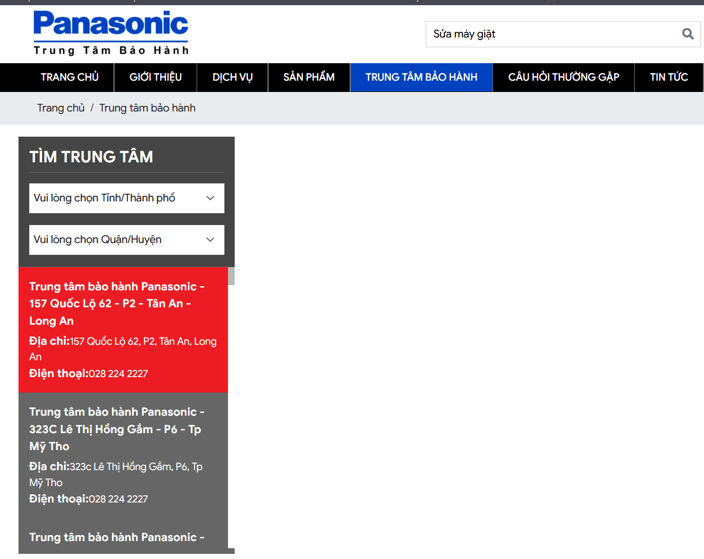- Danh sách trung tâm bảo hành máy giặt Panasonic