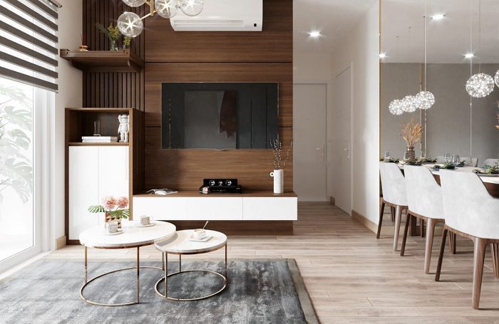 Kệ tivi kết hợp bàn thờ sẽ giúp bạn giải quyết vấn đề này. Sự kết hợp vừa tạo nên sự thống nhất trong thiết kế, vừa có thể giúp bạn tiết kiệm diện tích phòng khách.