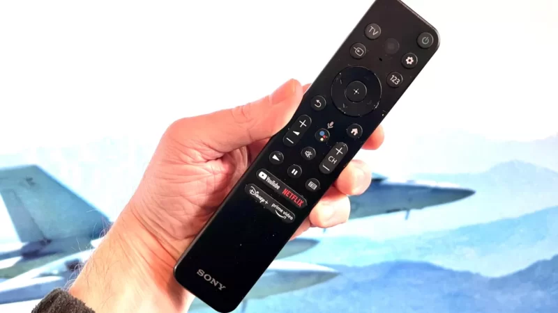 Điều khiển từ xa của Sony rất nhỏ gọn và nhẹ, với các nút ở trên cùng để chuyển đầu vào hình ảnh và truy cập menu Cài đặt. Nút ở giữa để điều chỉnh âm lượng và chọn kênh.