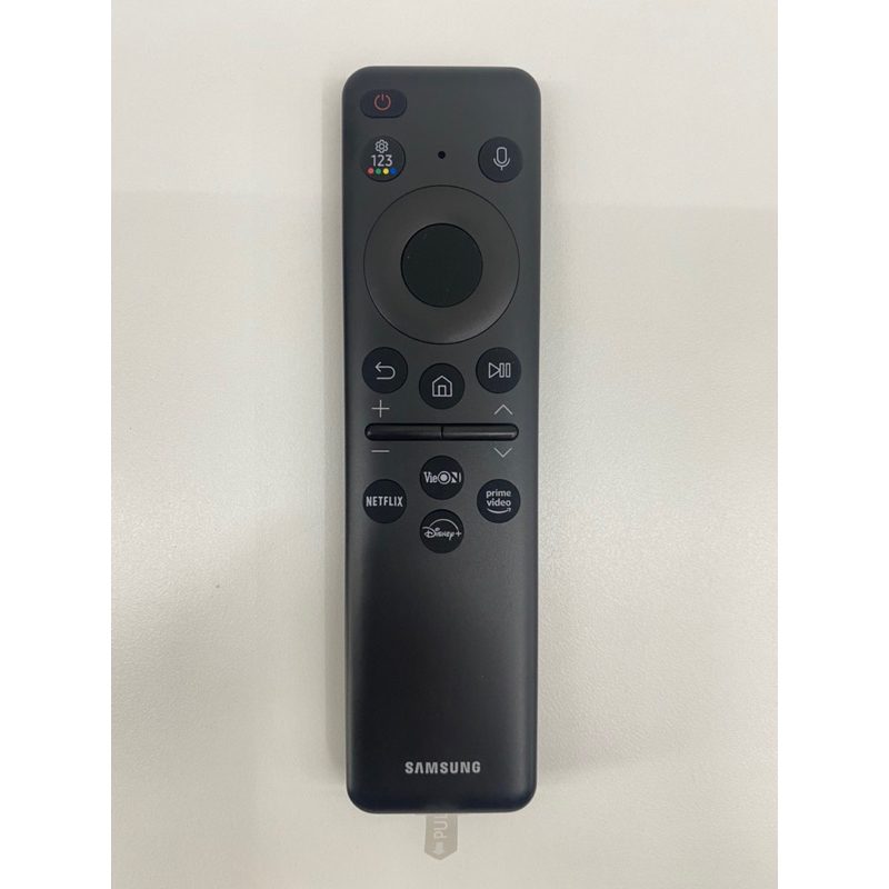 Điều khiển từ xa đi kèm được thiết kế mỏng, phẳng, màu đen với một phím điều hướng hình tròn ở gần trên cùng. Phía trên nó là nút lệnh micro (cho phép kết nối giọng nói tivi Samsung) và nút nguồn. Bên dưới là các nút menu, nút phát lại và bộ chỉnh âm lượng. Ở dưới cùng là các nút dịch vụ dành riêng cho Prime Video, Netflix, VieON và Disney .