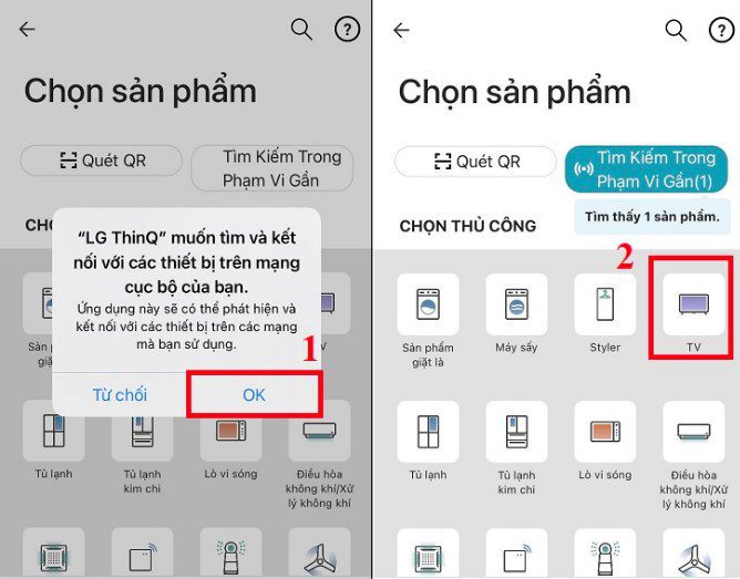 Bước 6: Chọn OK để tìm kiếm thiết bị -> chọn TV.