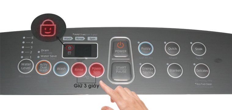 Tính năng khóa trẻ em trên máy giặt lồng đứng Samsung