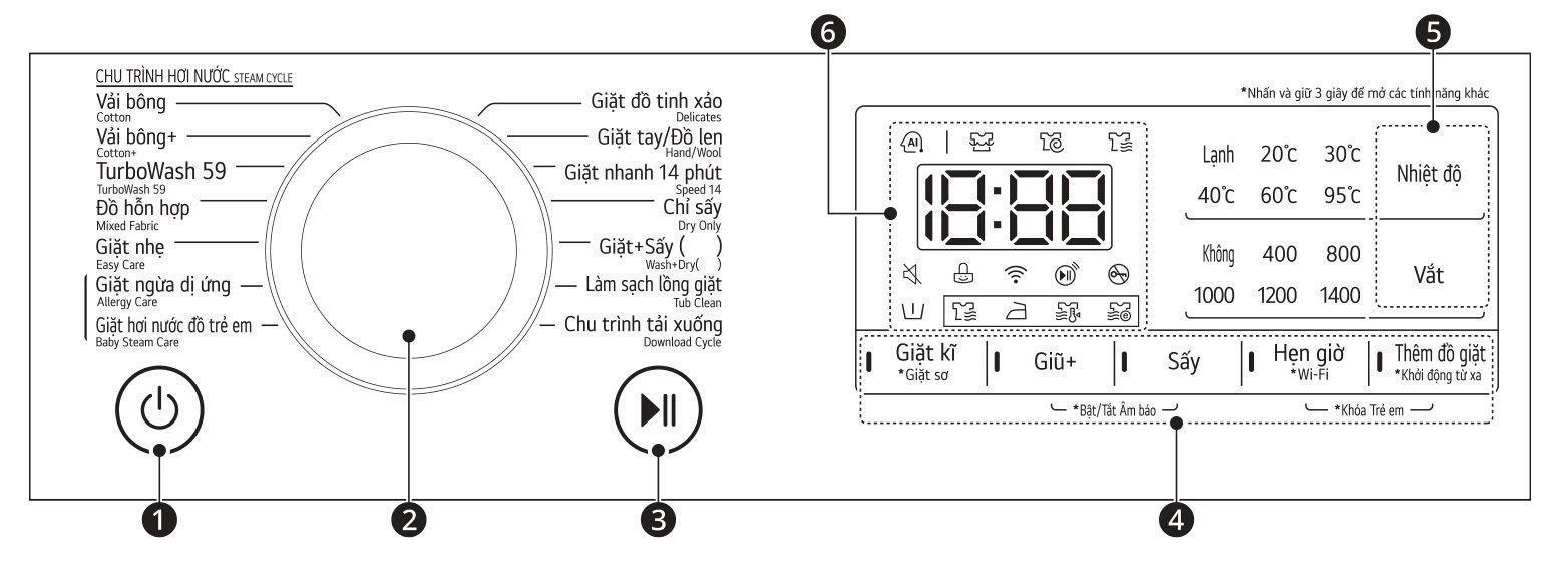 1. Chức năng và cách dùng màn hình điều khiển máy giặt sấy LG