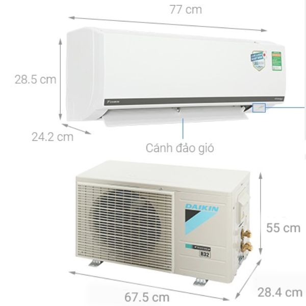 - Kích thước dàn lạnh: Dài 77 cm – Cao 28.5 cm – Dày 24.2 cm