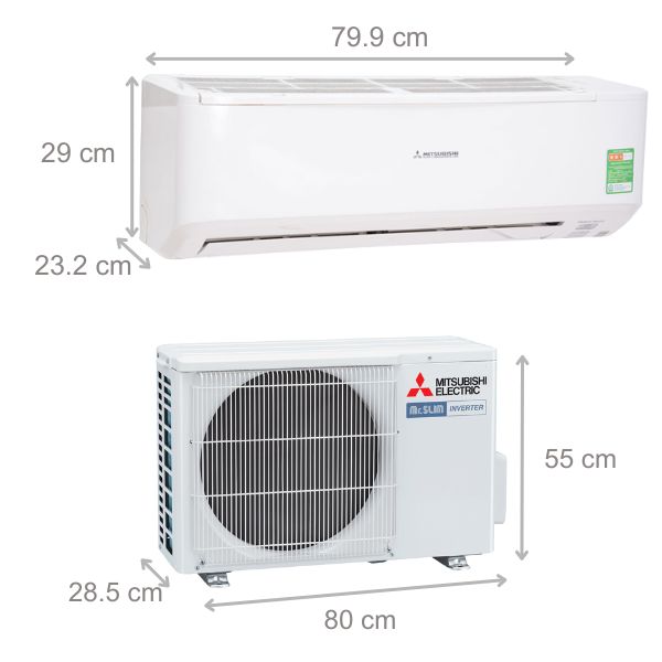 - Kích thước cục nóng: Dài 80.0 cm – Cao 55.0 cm – Dày 28.5 cm