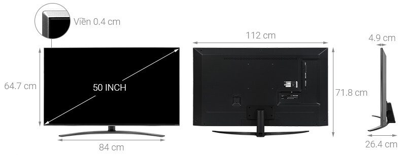 - Tivi LG 50 inch dài, rộng, cao bao nhiêu cm?