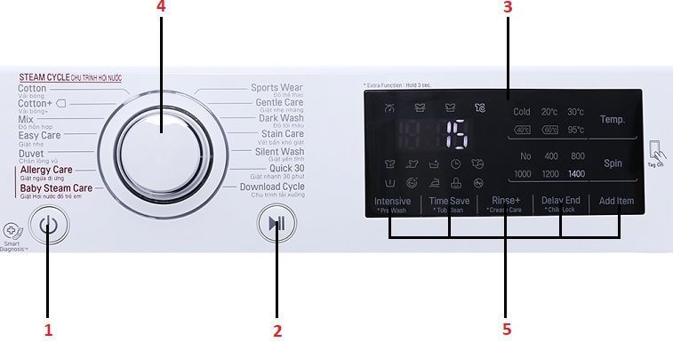 5. Nút chức năng phụ trợ: chọn chương trình giặt bổ sung.