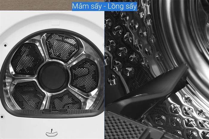 – Cơ chế sấy đảo chiều giúp quần áo tơi đều, giảm nhăn, đồng thời hạn chế xoắn rối.