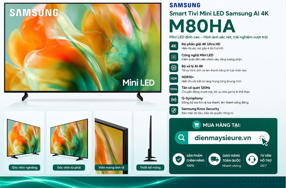 Quý khách quan tâm đến siêu phẩm Mini LED Samsung UA75M80HA, vui lòng liên hệ ngay hotline: Tuấn – 0965.790.100 để nhận báo giá ưu đãi và hỗ trợ giao lắp tận nơi ngay hôm nay!