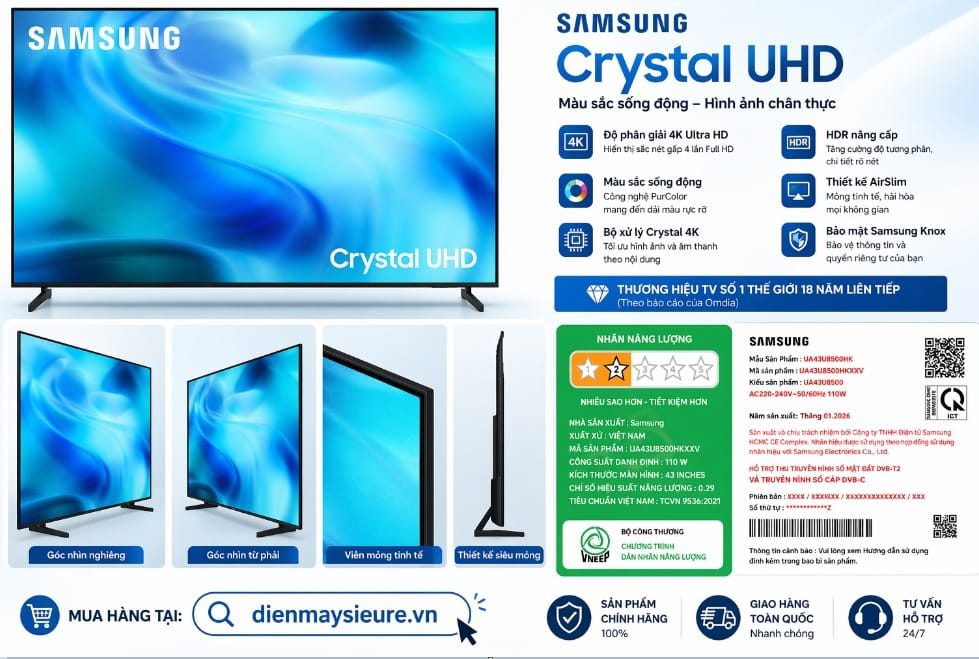 Trong thị trường điện máy đầy cạnh tranh, Samsung luôn giữ vững vị thế là hãng tivi số 1 thế giới suốt 18 năm liên tiếp. Thành công này không chỉ đến từ các dòng tivi cao cấp đắt đỏ mà còn nhờ sự đầu tư chỉn chu vào phân khúc Crystal UHD.