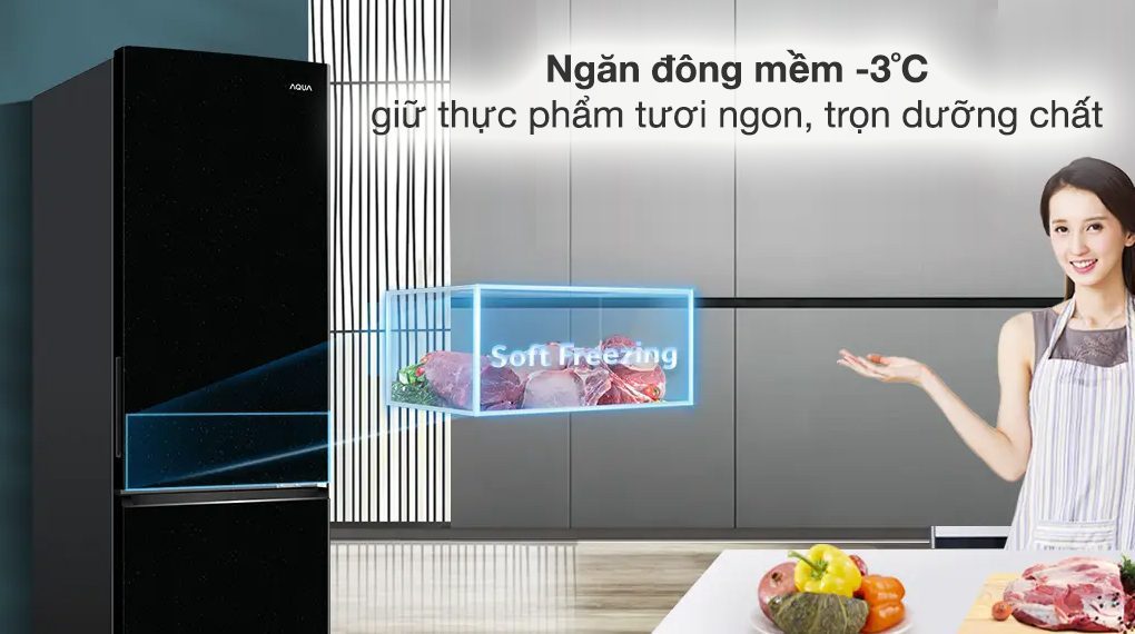- Ngăn đông mềm -3 độ C riêng biệt, giữ trọn độ tươi ngon, tránh lẫn mùi giữa thực phẩm, tiết kiệm thời gian nấu nướng khi không cần rã đông thực phẩm.