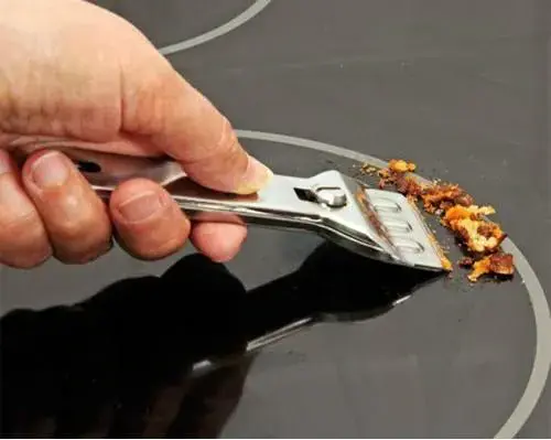 Khi sử dụng dao vệ sinh bạn cần phải thật cẩn thận, tránh để làm trầy xước mặt kính làm mất đi tính thẩm mỹ của chiếc bếp. Nếu vô tình làm trầy xước bạn có thể lấy baking soda pha với nước với tỉ lệ 3:1, thoa lên vết xước và ùng xung quanh. Để đó khoảng 10 phút, sau đó lấy khăn mềm lau theo vòng tròn nhỏ đến khi vết xước biến mất hoặc mờ đi.