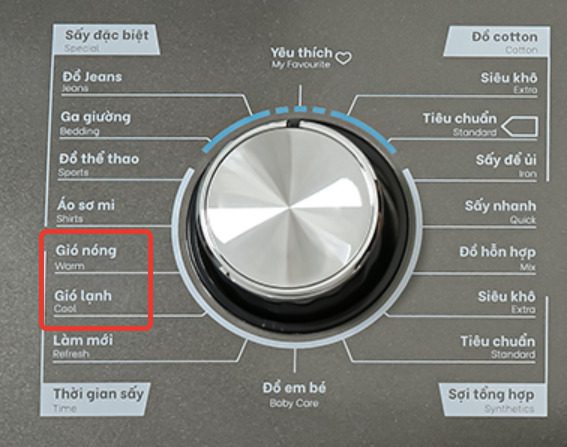 Ví dụ: nếu bạn chọn cài đặt Sấy gió lạnh hoặc Sấy nhẹ (Gentle/Delicate) cho một mẻ quần jean, khăn tắm và ga trải giường, quần áo của bạn sẽ bị ẩm vì bạn đã chọn một chế độ sấy quá yếu.